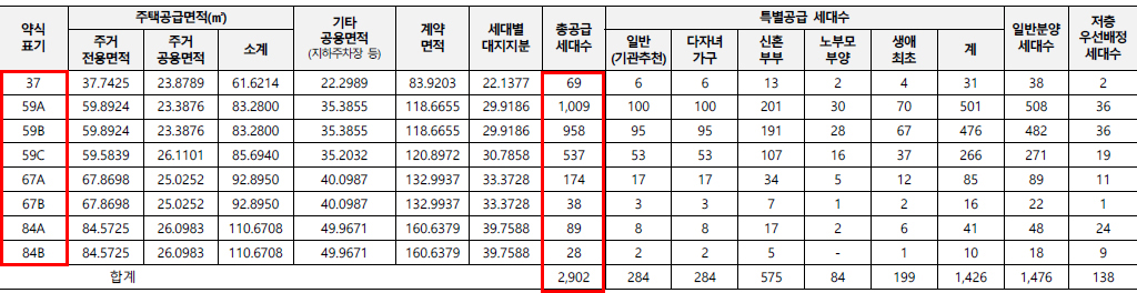 [특별공급 총 1,426세대 (기관추천 284세대, 다자녀가구 284세대, 신혼부부 575세대, 노부모부양 84세대, 생애최초 199세대 포함)] 및 부대복리시설