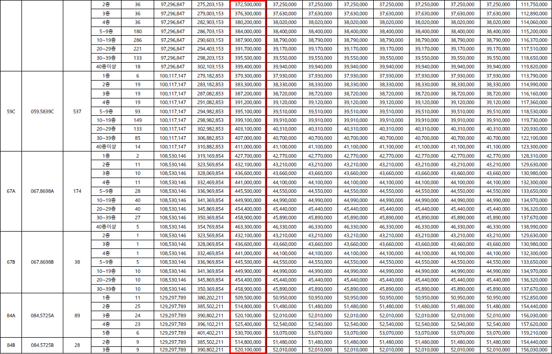 | 전용면적 84㎡(최고가기준) | 5억3070만원 | 5억6900만원 |