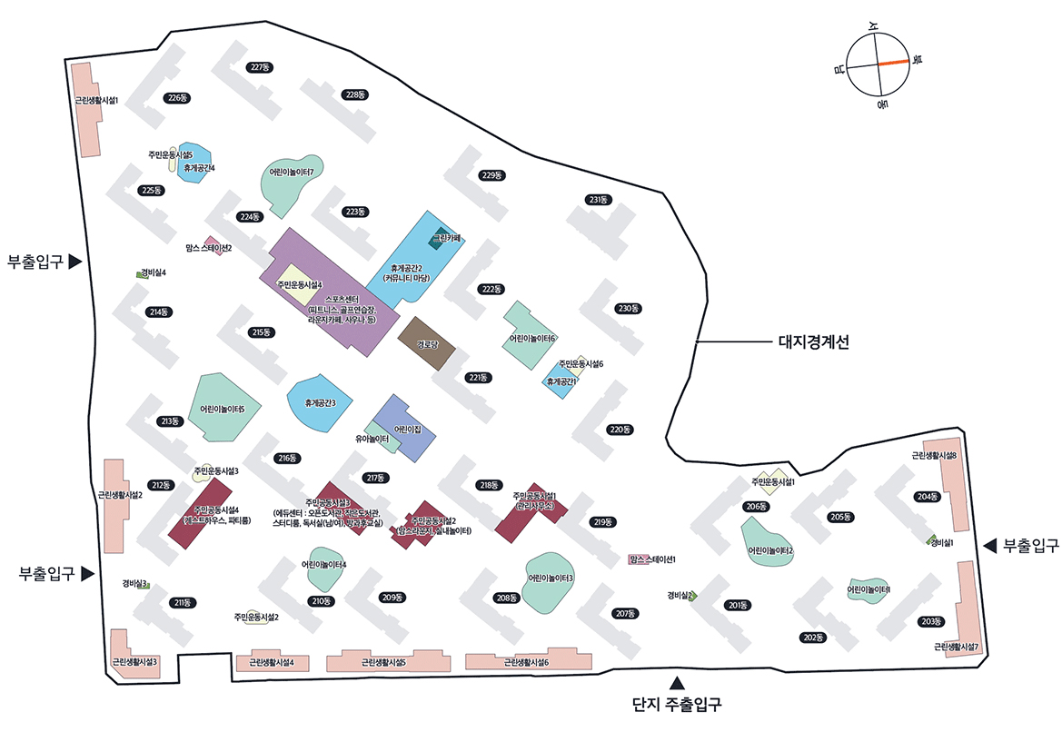 - 입주자를 위한 피트니스, 사우나, 골프연습장 등 단지내 여가시설과 게스트하우스, 독서실, 도서관, 방과후교실 등 다양한 커뮤니티 시설 배치