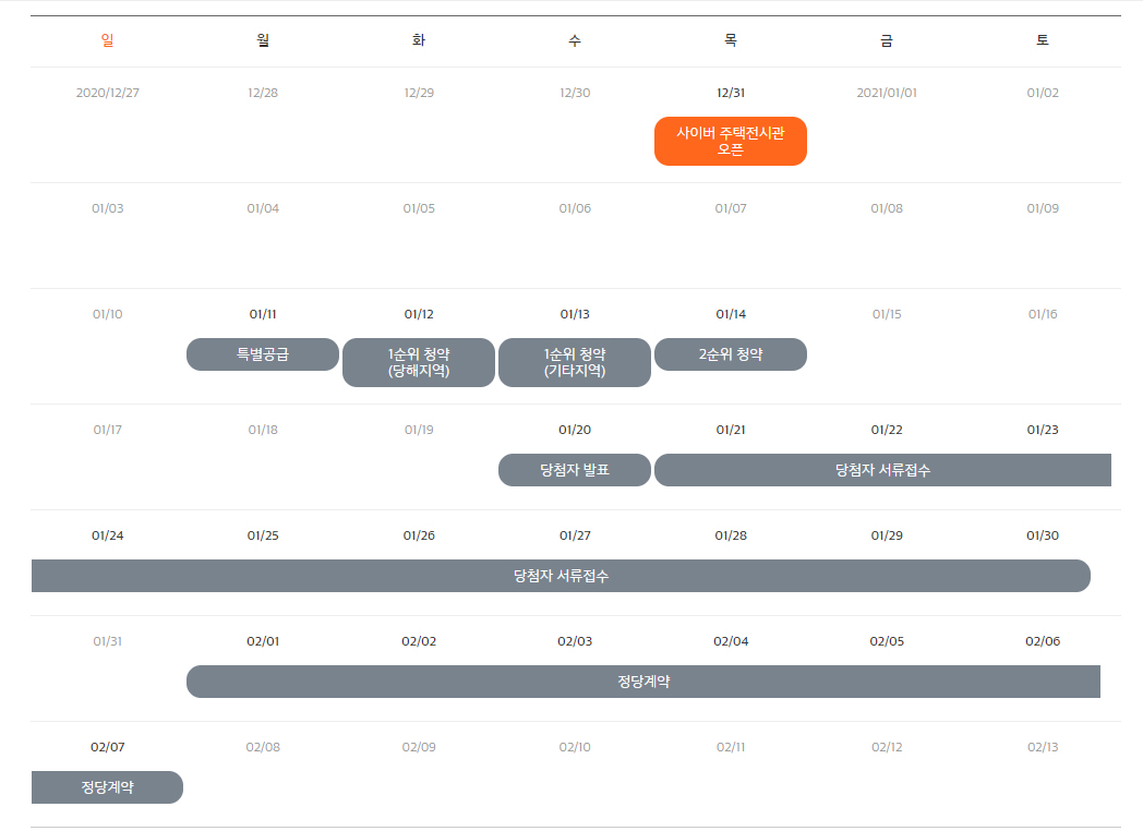 e편한세상 부평그랑힐스와 부평 캐슬&더샵 퍼스트의 경우 특별공급(1월11일)부터 1,2순위(1월12일,14일) 청약일정이 동일하게 진행되지만 당첨자 발표일이 1월 20일과 21일로 서로 다르다.