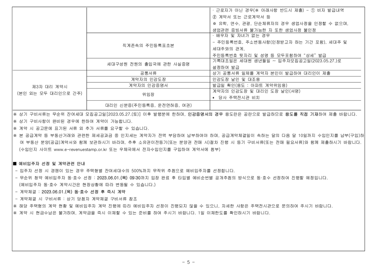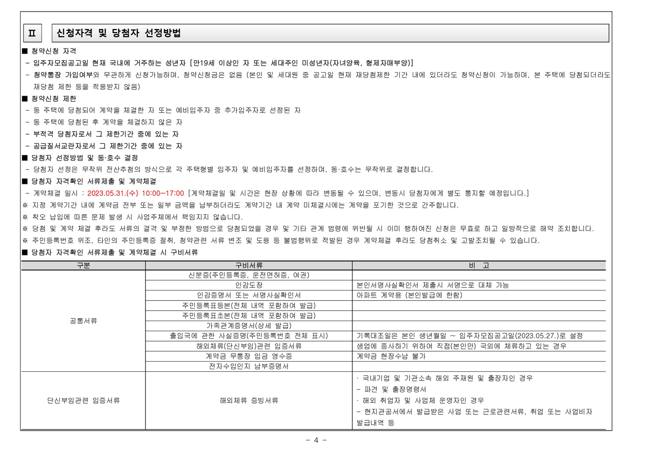 계약체결 및 당첨자서류제출 : 5월 31일