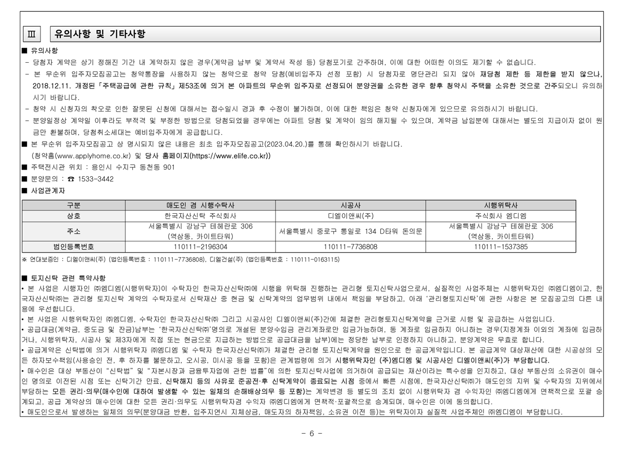 용인역 이편한세상 플랫폼시티 무순위 청약은 1순위 및 2순위 청약마감단지로 예비입주자를 대상으로 추가입주자를 선정하고 남은 미계약 세대를 공급하는 것으로 본 아파트의 무순위 입주자로 선정되어 계약체결하고 분양권을 소유한 경우에는 향후 청약 시 주택을 소유한 것으로 간주되기 때문에 주의해야한다.