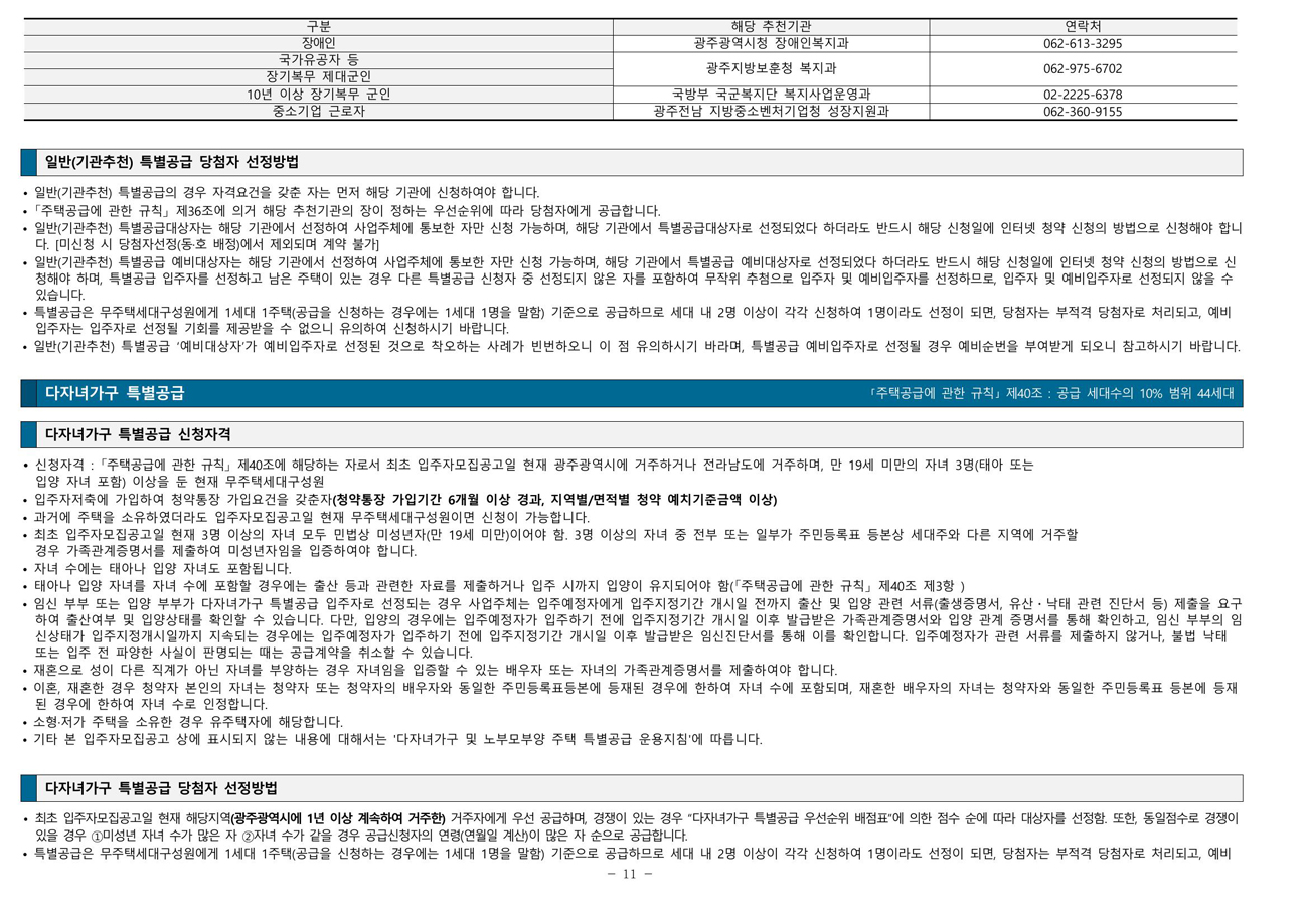 ◆ 최초 입주자모집공고일(2023.06.02.) 현재 광주광역시에 거주하거나 전라남도에 거주(주민등록표 등본 기준)하는 만19세 이상인 자 또는 세대주인 미성년자(자녀양육, 형제자매 부양) [국내에서 거주하는 재외동포(재외국민, 외국 국적 동포) 및 외국인 포함]의 경우 청약이 가능하다. 다만 청약신청자 중 같은 순위 내에 경쟁이 있을 경우 해당 주택건설지역인 광주광역시 1년 이상 계속 거주자(2022.06.02. 이전부터 계속 거주) 우선한다.