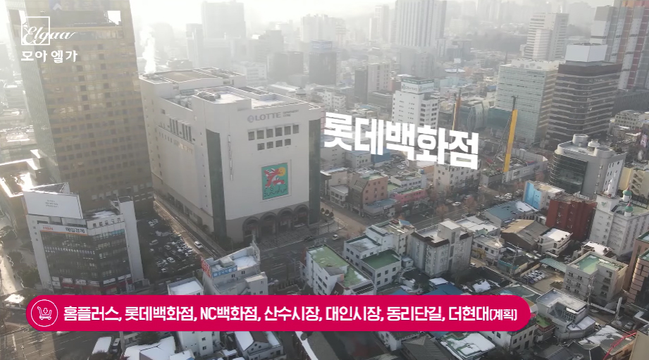 -롯데백화점, 홈플러스, NC백화점, 행정복지센터, 법원, 북구청, 동구청, 동리단길 등 중심생활