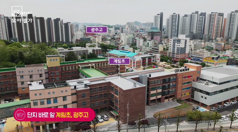 광주광역시 동구 계림동에 위치하는 광주 교대역 모아엘가 그랑데는 계림4구역 주택재개발정비사업으로 지하 2층 지상 17~25층, 11개동 총 815세대 중에서 조합원 및 임대, 보류지를 제외한 461세대를 일반분양하며, 전용면적 59㎡~84㎡ 총 5개평면으로 구성되어 있다.
