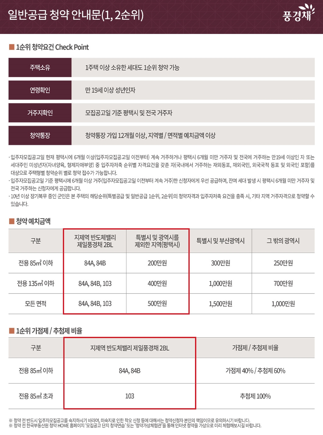만 19세이상 성년인자로서 모집공고일 기준 평택시 및 전국 거주자 및 청약통장 가입기간 12개월 이상이면 1주택 이상 소유한 세대도 1순위 청약이 가능하다. 단지가 위치하는 반도체밸리 도시개발사업은 평택시 여건변화에 따른 계획적,체계적 도시개발 도모와 평택 동부지역의 원활한 택지를 공급하여 친환경 주택단지 조성을 위한 직주근접의 배후주거단지이다.