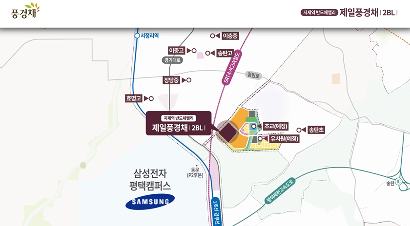 -삼성전자 평택캠퍼스 직선거리 약 650m(동문P2후문 기준), 송탄일반산업단지, 쌍용자동차 등 직주근접에서 누리는 워라밸 라이프