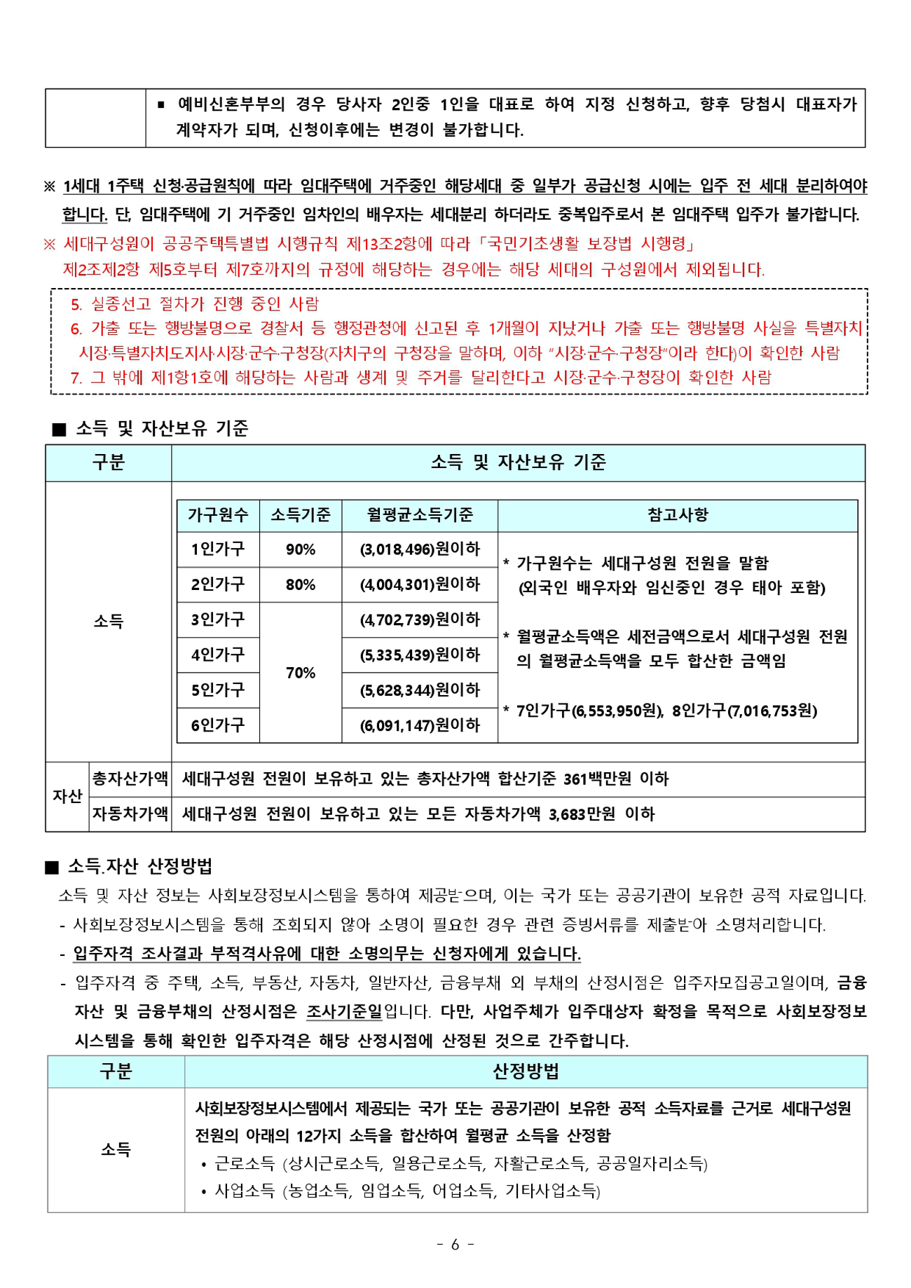 * 청약납입회수는 통장 납입횟수가 아닌 청약순위확인서에 의함