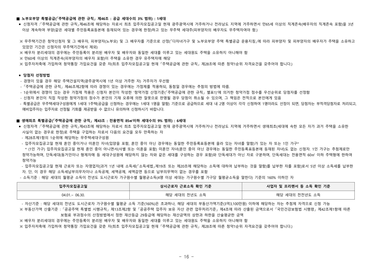 [특별공급 30세대(일반[기관추천] 6세대, 다자녀가구 6세대, 신혼부부 11세대, 노부모부양 1세대, 생애최초 6세대 포함)] 및 부대복리시설