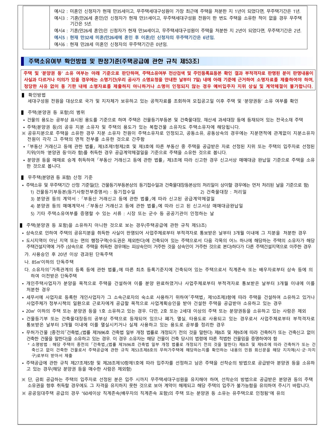 또한 [무주택세대구성원] 전원이 [주택 및 분양권등] 각목의 요건을 모집공고일부터 분양전환 시까지 계속해서 유지해야하며 만약 해당 자격을 유지하지 못하였음이 판명된 경우 계약이 해제(해지)된다. (외국인은 신청불가)