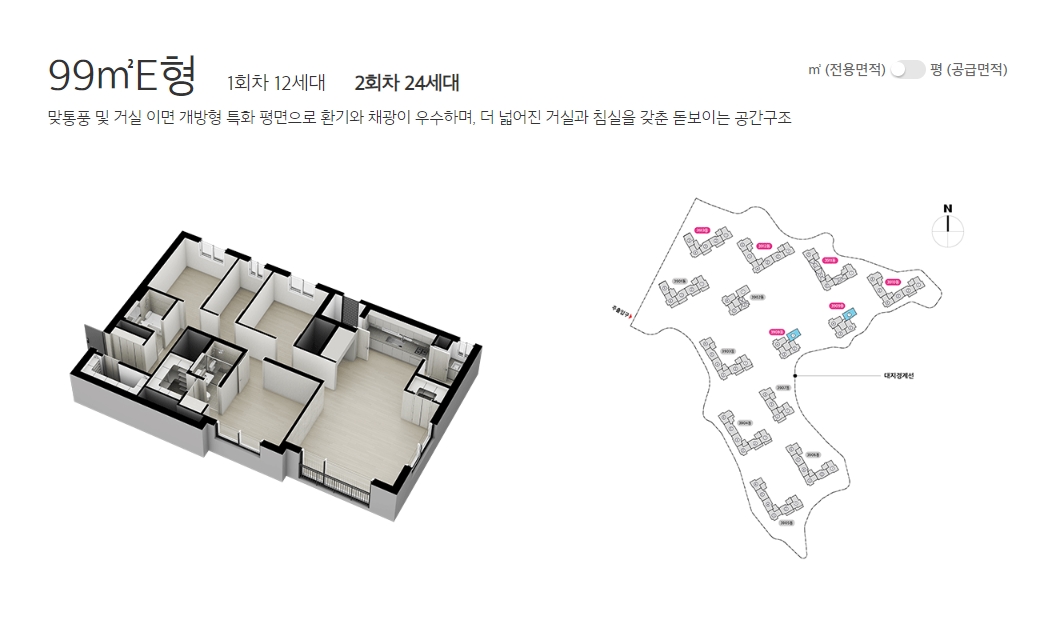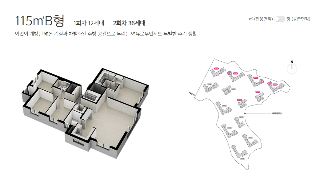 | 공급타입 | 주택면적/㎡ (전용+공용) |
