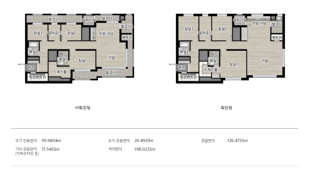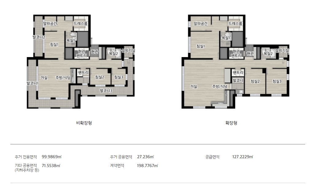 | 총10개타입 : 99A, 99B, 99C, 99D, 99E, 99F, 99G, 99H, 115A, 115B | 총 8개타입 : 99A, 99B, 99C, 99D, 99E, 99F, 115A, 115B |