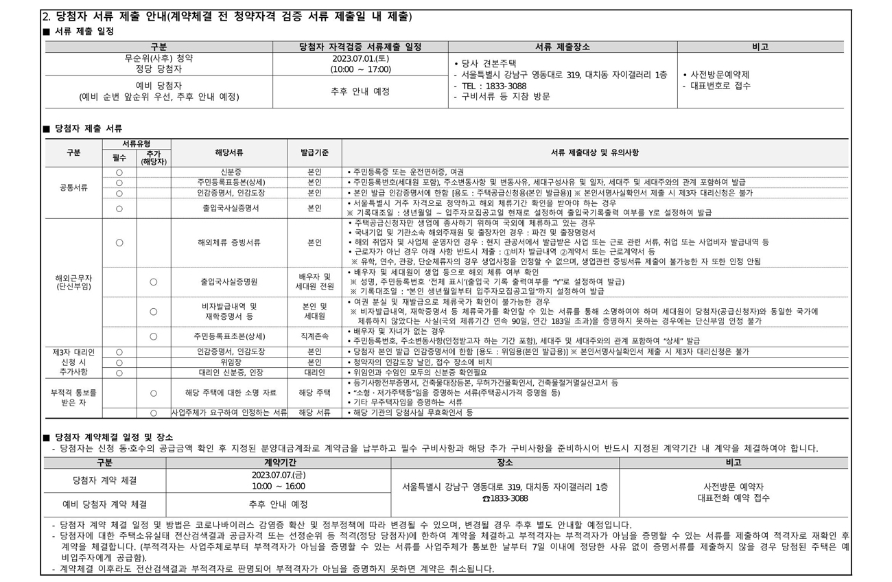 ⦁ 입주지정기간 : 최초입주개시 2023년 2월 28일 (금회 공급분에 대해서는 2023.9.7.(목)까지 잔금 완납 후 입주 가능)