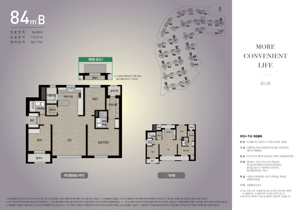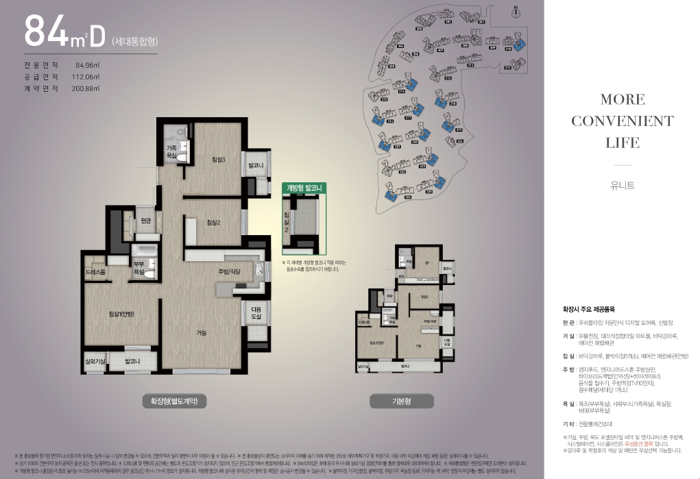 • [발코니확장], [플러스옵션], [가전옵션]은 아파트 공급대금(분양가격)에 포함되지 않은 별도 계약 사항이며 기존 계약을 승계하는 조건으로 추가 선택 및 변경을 할 수 없다.
