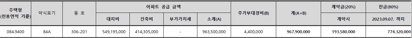 입주시기 : 최초 입주개시 2023년 02월 28일 (금회 공급분에 대해서는 2023.09.07.(목)까지 잔금 완납 후 입주 가능)