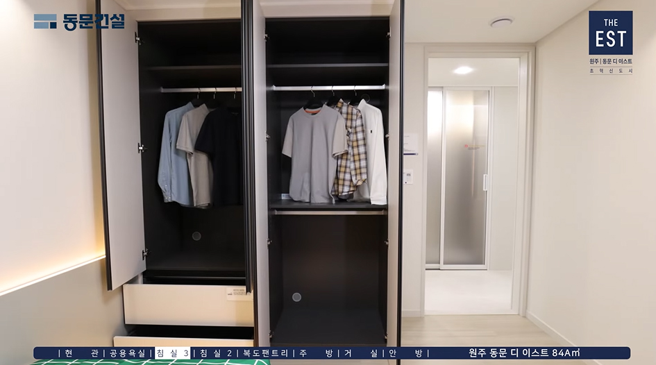 ※ 침실3 드레스룸 유상옵션 미 선택 시 벽체는 벽지로 마감되며, 별도의 도어는 설치되지 않음.