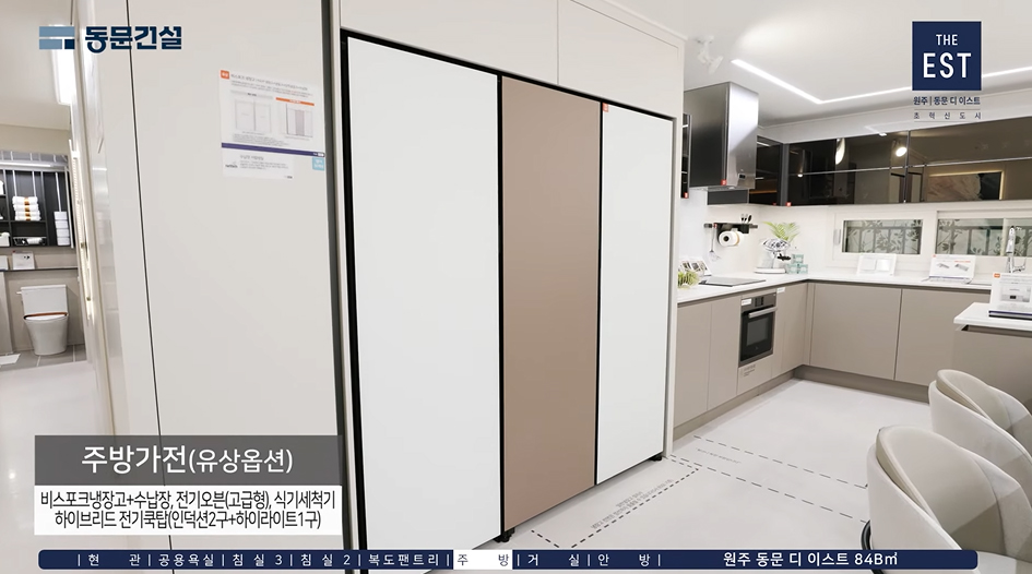 ※ 주방장식장 미선택시 벽체는 벽지로 마감되며, 주방장식장 유상옵션은 84C타입만 선택가능함.