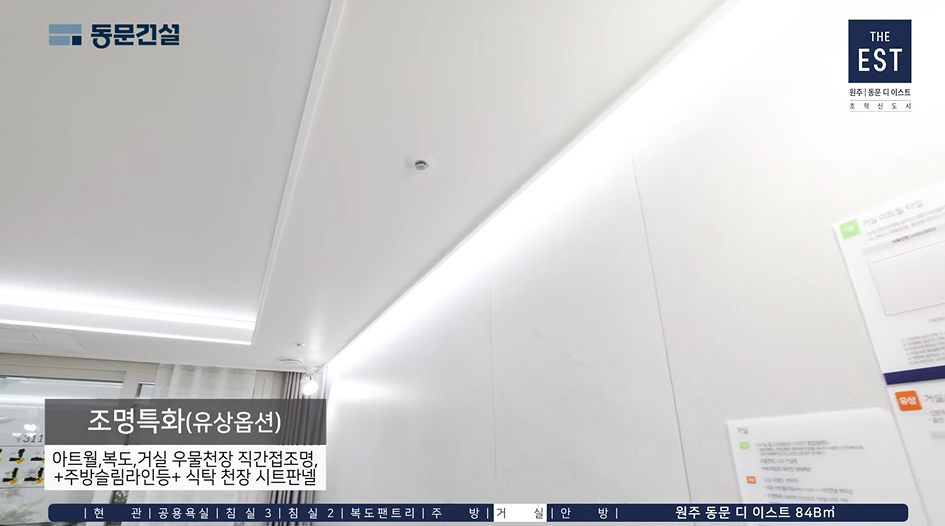 ※ 조명특화 미선택시 거실 아트월, 복도천정 단차가 없음(우물천장 제외), 벽지 마감됨.